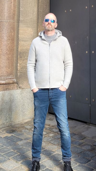 Kapuzenjacke und Pullover PHIL PETTER, Jeans BLUE DE GENES