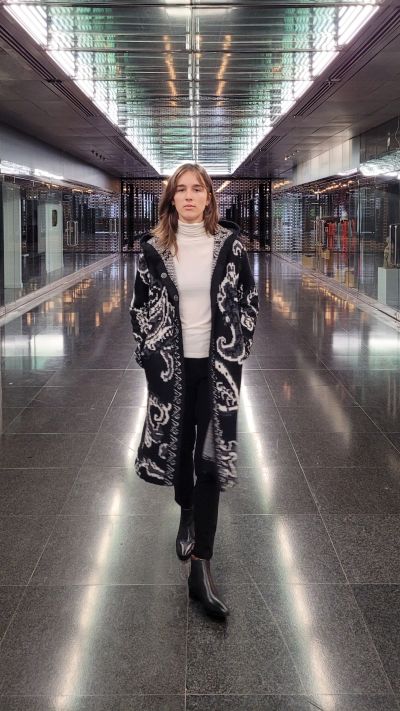 Strickmantel, Shirt mit Rollkragen, Hose TANDEM