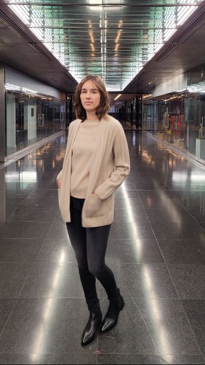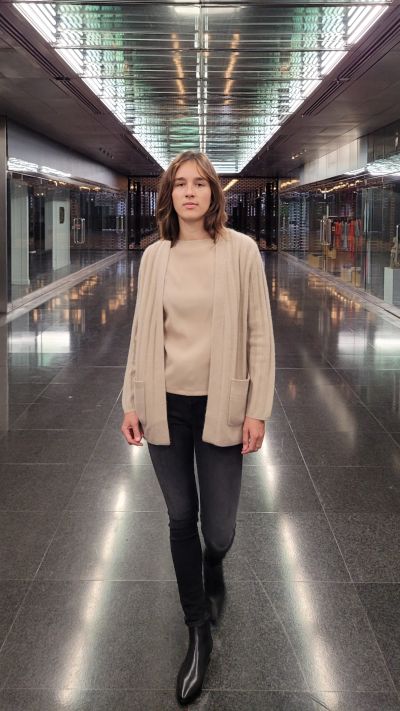 Kaschmir Jacke, Seiden Shirt S.MARLON, Jeans DENHAM