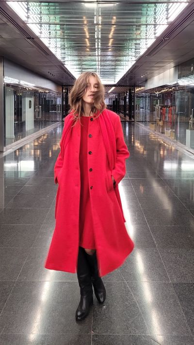 Schurwollmantel HANNES ROETHER, Kaschmir Kleid und Kaschmir Schal CIPRIANI