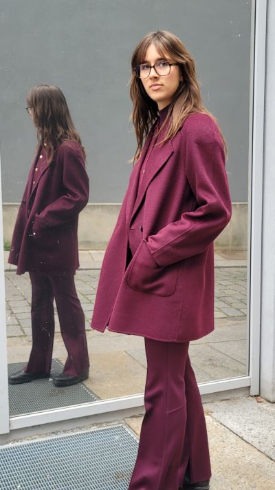Schurwollmantel, Cardigan, Stehkragen Pullover, Hose RIANI