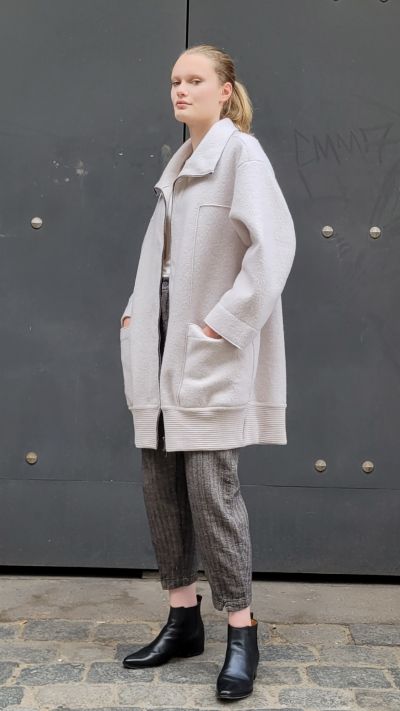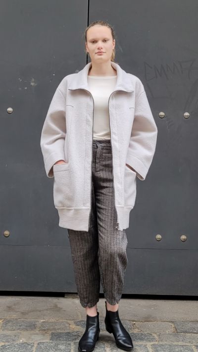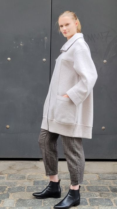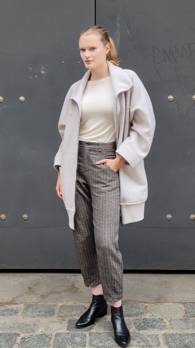Schurwollmantel, Modal Shirt und Fischgrät Hose TRANSIT DONNA