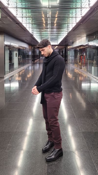 Schurwollpullover, Schal, Hose TRANSIT UOMO, Boots SCHUHE UND HANDWERK MÜNCHEN