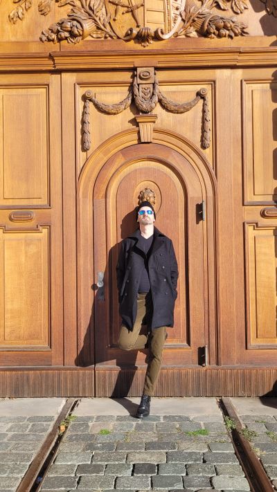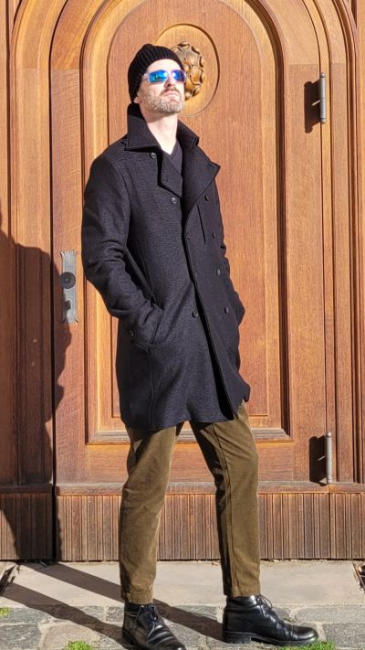 Wollmantel und Merino Mütze HANNES ROETHER, Hose TRANSIT UOMO