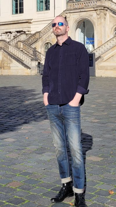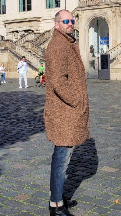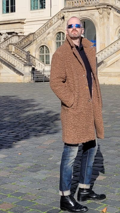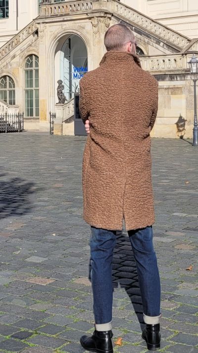 Mantel BOB, Babycord Hemd und Jeans BLUE DE GENES