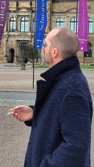 Mantel BOB, Shirt HANNES ROETHER, Hose TRANSIT UOMO