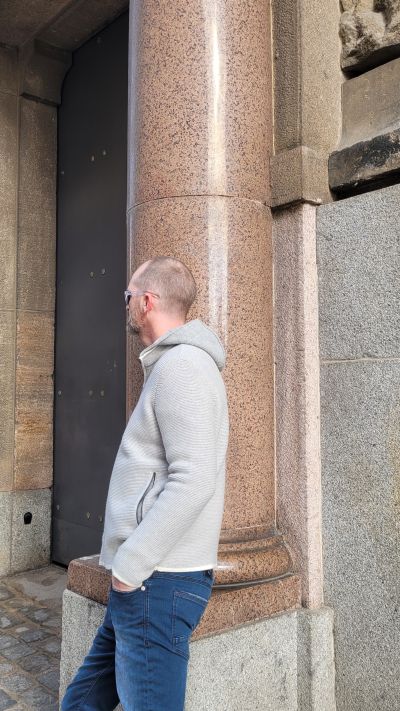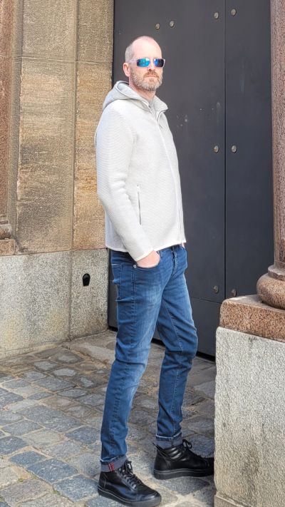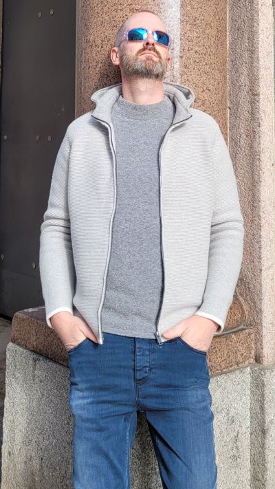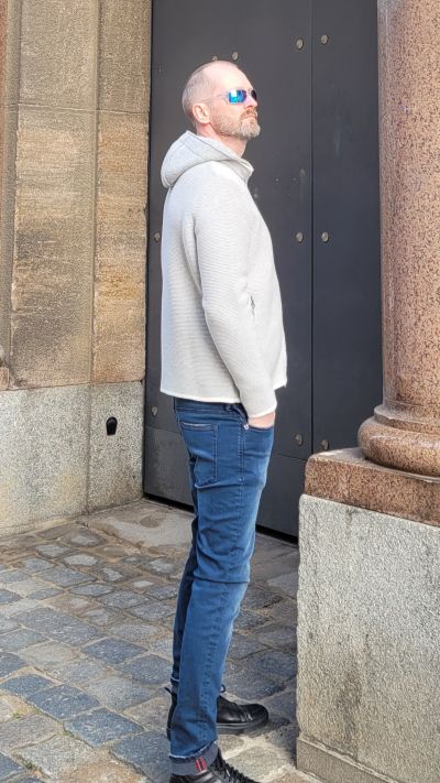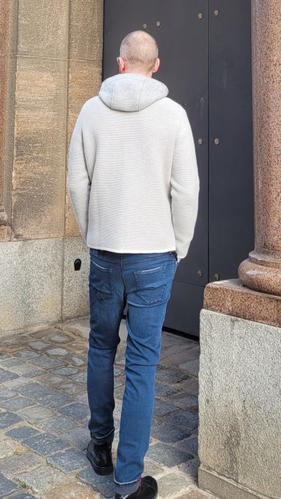 Kapuzenjacke und Pullover PHIL PETTER, Jeans BLUE DE GENES